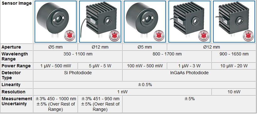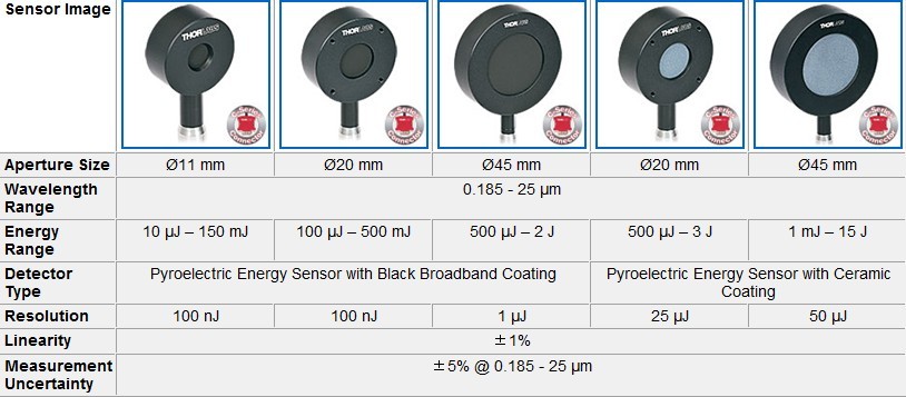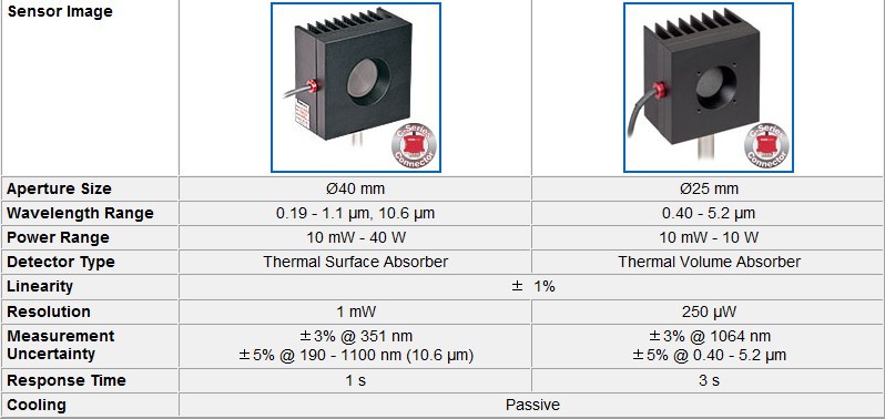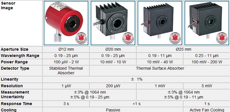 用于準(zhǔn)分子和YAG激光器的熱敏傳感器