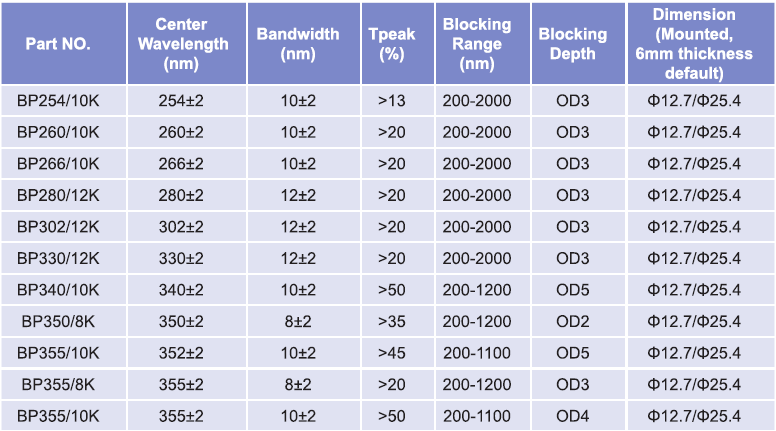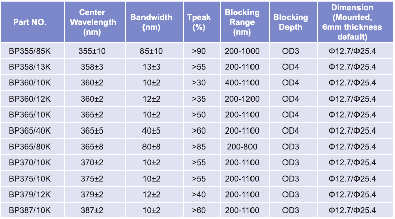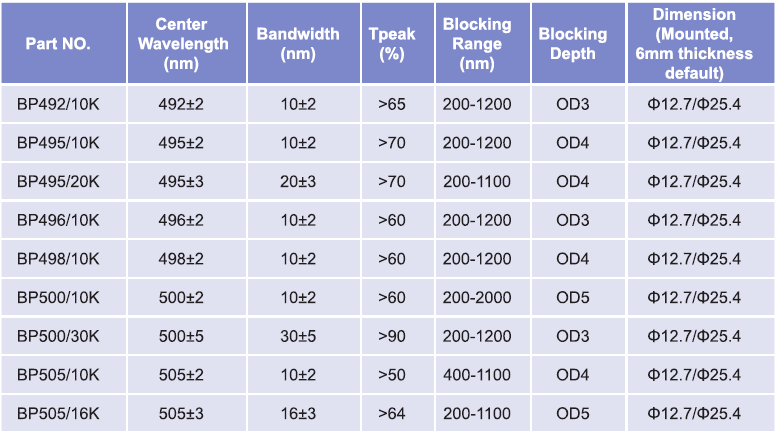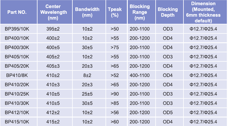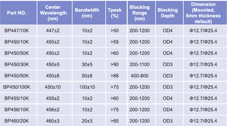 4、庫存:上萬種標準及非標準帶通濾光片產(chǎn)品現(xiàn)貨供應(yīng)