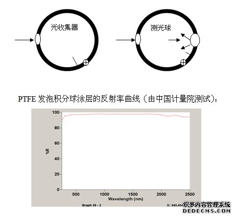 PTFE發(fā)泡積分球是一種新產(chǎn)品,它不同于用PTFE涂料噴涂的積分球,它是PTFE 粉料經(jīng)改性、發(fā)泡,再機加工成球殼形,后經(jīng)拋光、清洗而成。其大優(yōu)點是涂層壁厚,永不脫落。本品的光學(xué)性能很好,反射高,光譜中性,穩(wěn)定性好。不透光,效率高;涂層強度高,整體性好,不怕潮濕,甚至可以用于水底測量,還可以用于更惡劣的環(huán)境中,如酸、堿、鹽水溶液中光測量。球體加工精度高,外形多變,可以適應(yīng)各種儀器光路設(shè)計,在光學(xué)儀器中廣泛應(yīng)用。