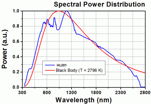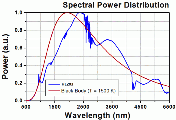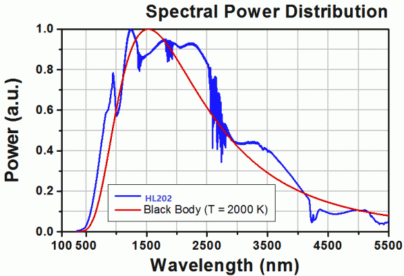 HL203 類(lèi)鹵鎢燈光源光源具有在500 至9000 nm 間的恒定光強(qiáng),>1.5 W 的黑體輻射光譜。由于該黑體光譜覆蓋了可見(jiàn)光和中紅外光譜范圍,這個(gè)光源是集成到中紅外測(cè)量和分析系統(tǒng)的理想選擇。它使用了一個(gè)位于橢球反射器內(nèi)的碳化硅棒,以增大光輸出。一個(gè)CaF2 透鏡準(zhǔn)直光源發(fā)射的光。包含的自定義濾光片支架加工成匹配光源外殼的高度,并且也經(jīng)過(guò)了紅色陽(yáng)氧化處理。