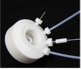 2.7原位拉曼光譜電化學(xué)池 聚四氟乙烯精工雕琢而成,石英檢測(cè)口;工作電至石英窗口距離可調(diào),配有鉑絲電和銀-氯化銀電。 ![]()
