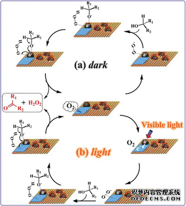 TiO2@NC-Ru-T中氮摻雜碳不僅增強(qiáng)了Ru納米顆粒的催化性能,同時(shí)通過(guò)Mott-Schottky接觸促進(jìn)了光活化Ru納米顆粒中光生電子向TiO2的輸運(yùn)。在可見(jiàn)光照射下,上述效應(yīng)可以大增強(qiáng)乙醇在空氣中的選擇性需氧氧化。這一研究為光催化反應(yīng)中提高可見(jiàn)光吸收和電荷/電子轉(zhuǎn)移提供了可行的方法,也為開(kāi)發(fā)將太陽(yáng)能轉(zhuǎn)化為相關(guān)化學(xué)品的能源轉(zhuǎn)換反應(yīng)催化劑指明了新的方向。