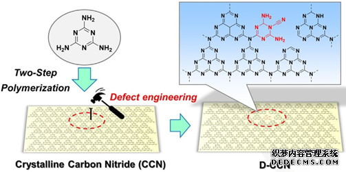 近年來(lái),氮化碳晶體(CCN)基半導(dǎo)體在太陽(yáng)能轉(zhuǎn)化領(lǐng)域吸引了研究者大的關(guān)注。然而,如果想進(jìn)一步提高CCN的性能就需要在高結(jié)晶性和良好的光催化性能間做出平衡。本文中作者利用缺陷工程思想對(duì)CCN光催化劑進(jìn)行了修飾設(shè)計(jì)。