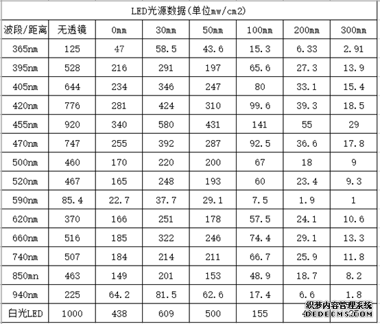 紫外可見(jiàn)大功率均勻LED數(shù)據(jù)表: