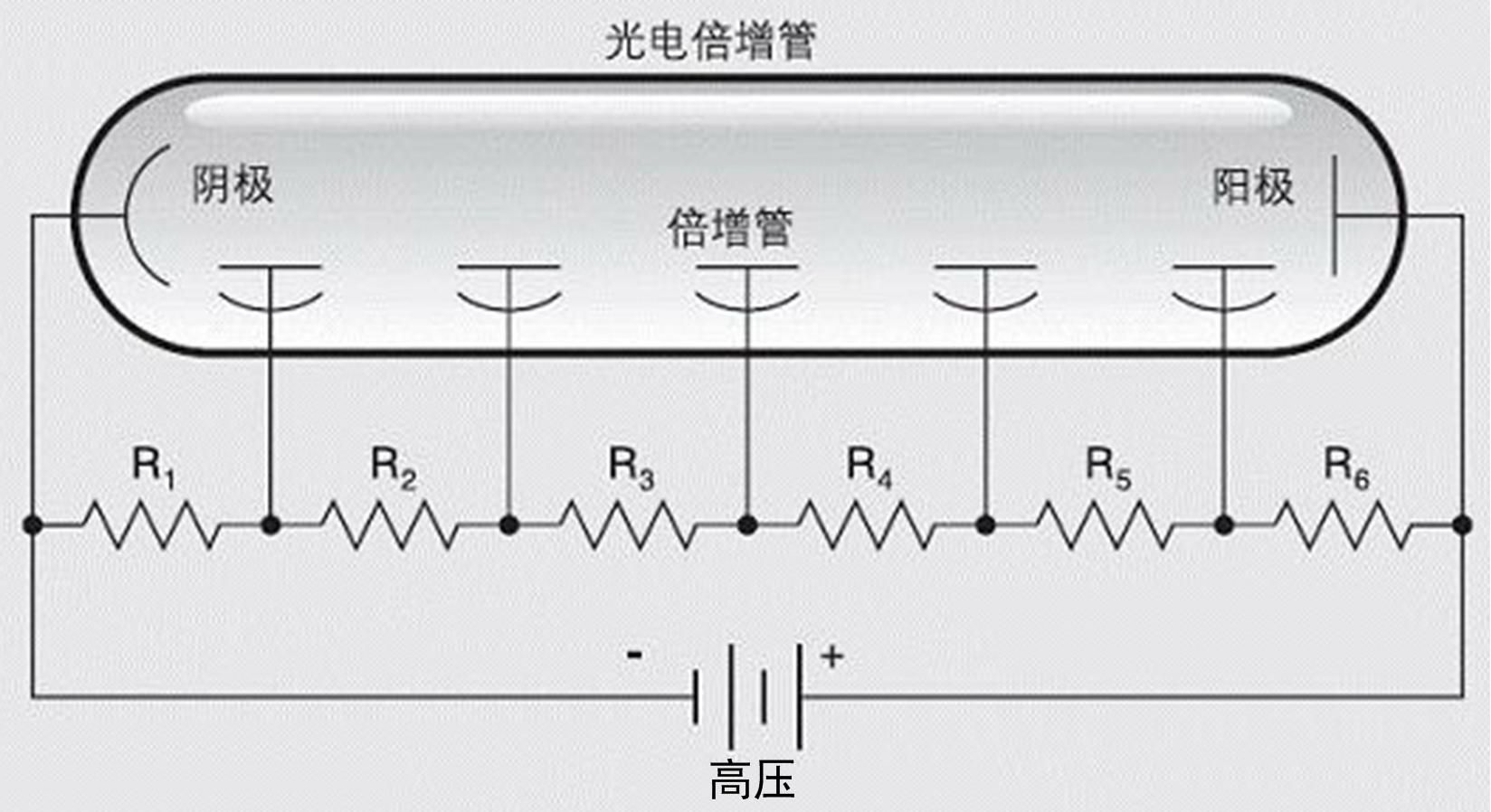 光電倍增管(Photomultiplier Tube,簡(jiǎn)稱PMT)將光信號(hào)轉(zhuǎn)化為電信號(hào),后續(xù)需要配合相應(yīng)附件及電路,如管座、分壓器、高壓電源等,才能使電信號(hào)正常輸出并處理。