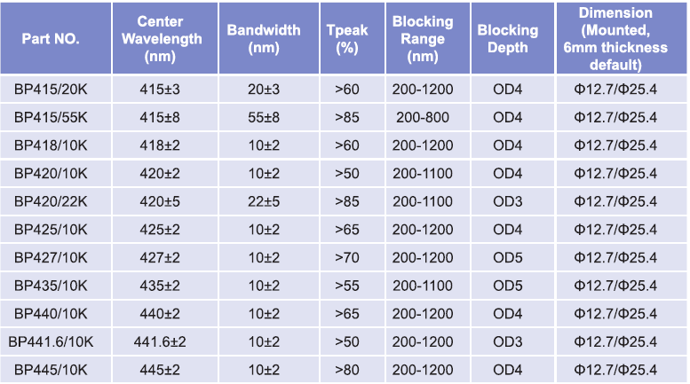 4、庫存:上萬種標準及非標準帶通濾光片產(chǎn)品現(xiàn)貨供應