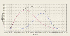 實(shí)測(cè)染料敏化電池量子效率曲線       實(shí)測(cè)染料敏化電池光譜響應(yīng)曲線